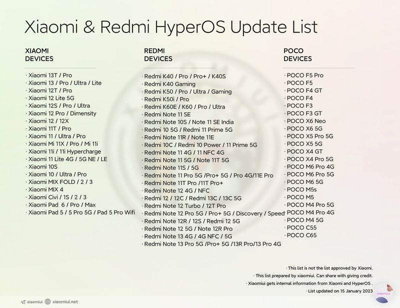 HyperOS Güncellemesi Alacak Xiaomi, Redmi ve POCO Modeller