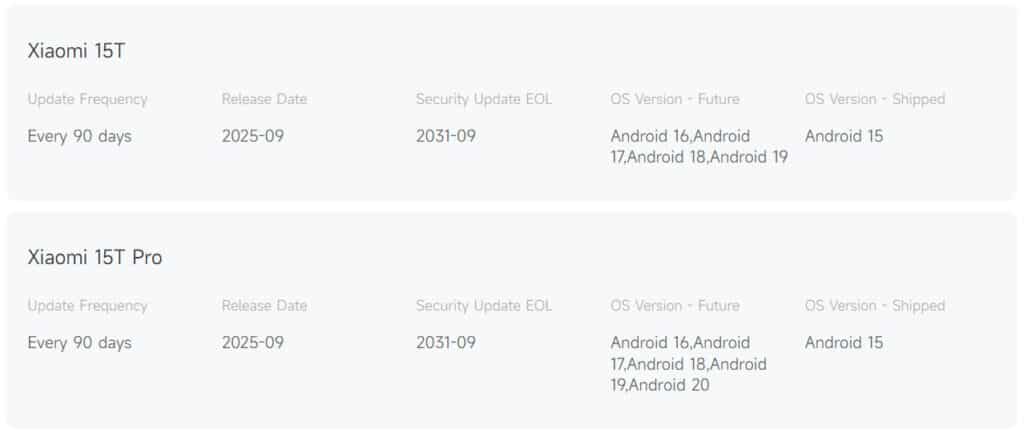 Xiaomi, cihazları için yazılım destek planını güncelledi ve markanın Android 20’ye yükseltilecek ilk cihazlarını açıkladı. Akıllı telefonlar arasında, Eylül 2031’e kadar beş Android sürüm yükseltmesi ve güvenlik yamaları da dahil olmak üzere altı yıllık yazılım güncellemesi alacak olan Xiaomi 15T Pro da yer alıyor. Tabletler arasında ise Redmi Pad 2 ve Redmi Pad 2 Pro başı çekiyor ve Android 20’ye yükseltiliyorlar. Söz konusu güvenlik odaklı güncellemeler olduğunda ise her iki model Eylül 2031 dönemine kadar güncelleme almayı sürdürecek.
