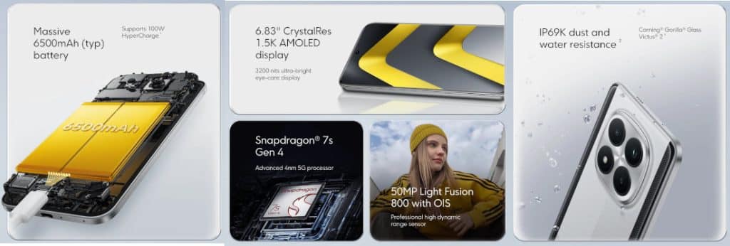 - 2.5GHz’e kadar çıkabilen sekiz çekirdekli Snapdragon 7s Gen 4 işlemci, 4nm üretim süreci, Adreno 810 GPU.