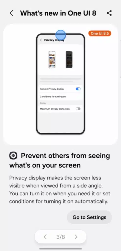 Bu özellik özellikle toplu taşıma veya kalabalık ortamlarda kullanım sırasında avantaj sağlayabilir. Samsung’un, Gizlilik Ekranı’nı manuel olarak açma seçeneği sunabileceği ya da bankacılık ve mesajlaşma gibi uygulamalarda otomatik olarak etkinleştirebileceği belirtiliyor.