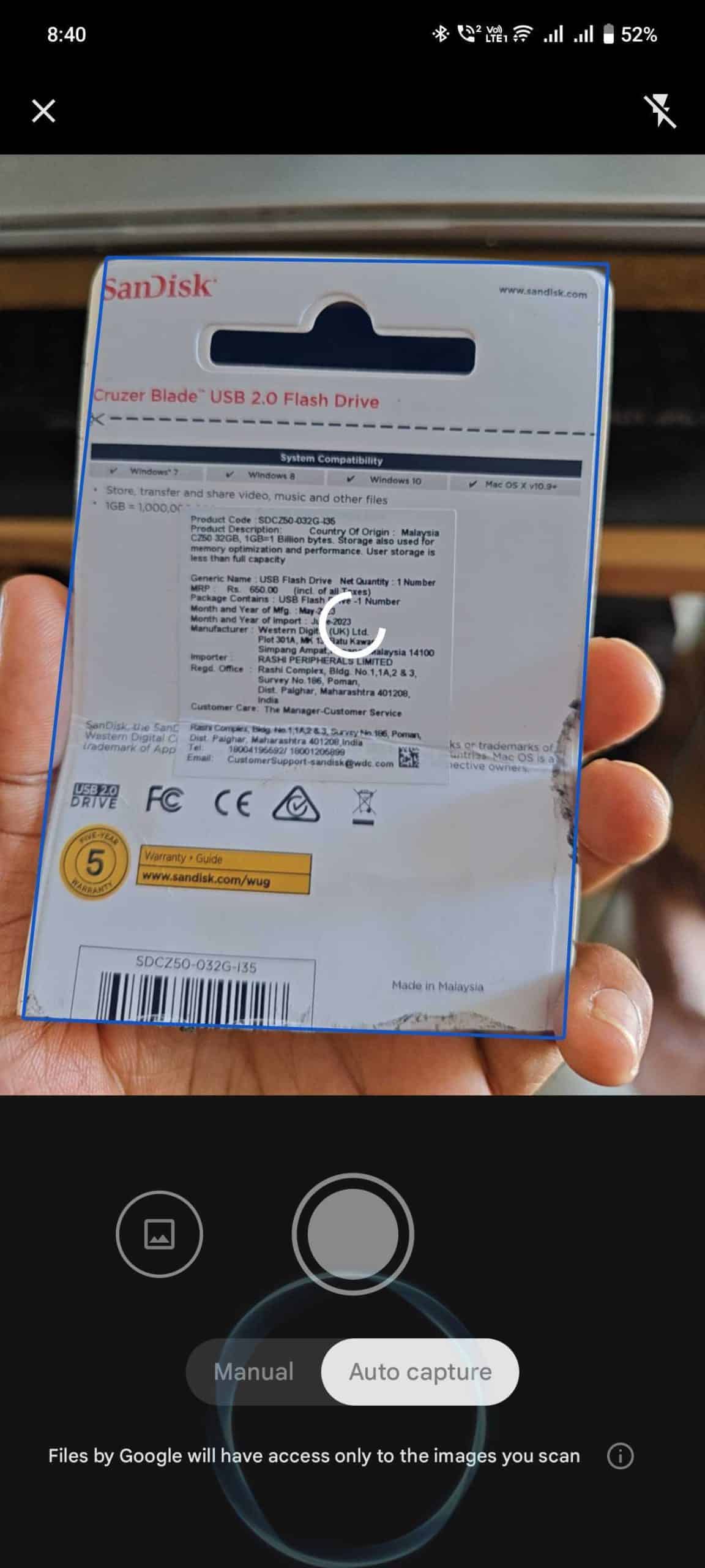 • Files by Google uygulamasını açın ve tara düğmesini tıklayın