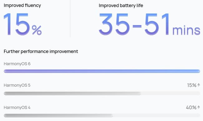 Ark Engine ile güçlendirilen HarmonyOS 6, cihazlar arası performansta büyük bir sıçrama vaat ediyor. Laboratuvar testleri, çoklu cihaz performansının HarmonyOS 4’e kıyasla %40’a kadar iyileştiğini ve pil ömrünün 35 ila 51 dakika uzadığını gösteriyor.