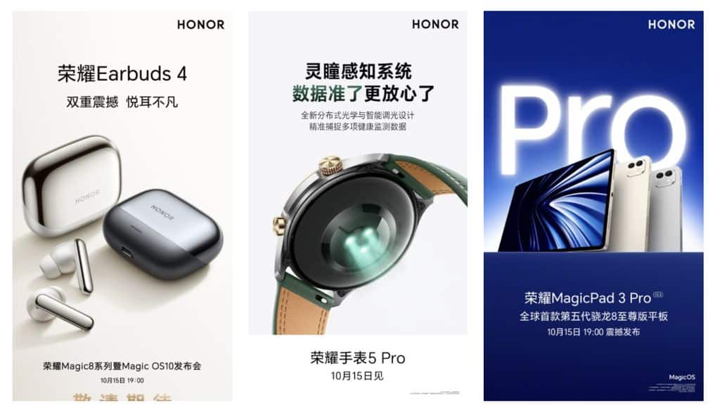 Etkinlik yalnızca telefonlarla sınırlı değil. Honor, aynı gün MagicPad 3, MagicPad 3 Pro, Magic Watch 5 Pro ve yeni Earbuds 4 modellerini de duyuracak.