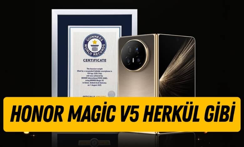HONOR Magic V5, 104 kilogram kaldırarak Guinness Dünya Rekorları’na girdi. Katlanabilir telefonlar arasında dayanıklılığıyla fark yarattı.