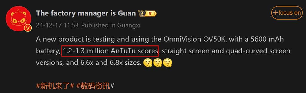 Weibo aracılığıyla aktarılan bilgiye göre Pura 80 serisine güç verecek olan 12 çekirdekli Kirin 9020 yonga seti AnTuTu testinde 1,2 milyon ila 1,3 milyon arasında puan alacak. Huawei Pura 70 serisine güç veren Kirin 9010 işlemcisinin AnTuTu testinde 900 bin ila 1 milyon arasında puan aldığını hatırlatalım.