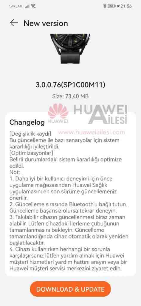 Güncellemeyi Huawei Sağlık uygulaması üzerinden yapabilirsiniz. Bunun için önce mağazayı ziyaret ederek uygulamayı en son sürüme yükseltebilirsiniz. Güncelleme sırasında saati bağlı tutmayı unutmayın.