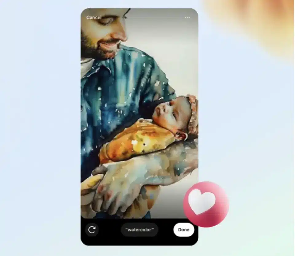Üretken yapay zeka filtresini kullanan uygulama, mevcut fotoğrafların farklı görünümlerle yeniden düzenlenmesini sağlıyor. Şirket, “Oluşturmak istediğiniz görüntünün yeni görünümünü ve hissini tanımlamak için ‘suluboya’ gibi bir tanımlayıcı veya ‘dergi ve gazetelerden kolaj, yırtık kenarlar’ gibi daha ayrıntılı bir bilgi istemi yazmayı düşünün,” diye açıklamalarda bulundu.
