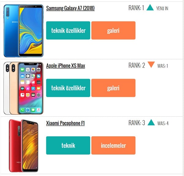 Geride bıraktığımız haftada heyecan yaratan sadece birkaç akıllı telefon tanıtımına şahit olduk. Samsung’un yeni nesil orta segment telefonu Galaxy A7 2018 üç arka kamerasıyla gündemde bir hayli yer edindi. Galaxy A7 2018 hakkında tüm detaylara buradaki haberimizden göz atabilirsiniz. Bunun yanında Xiaomi Mi 8 Pro ve Meizu’nun süper orta segment telefonu Meizu 16X dikkat çeken tanıtımlar oldu. Peki yeni telefon haftanın en popüler telefonlar listesini nasıl etkiledi? Geride bıraktığımız haftada yeni iPhone’ların damga vurduğu listede zirve değişti. Ancak yeni iPhone’lar haftanın en popüler akıllı telefonları listesinde yer almayı sürdürüyor.