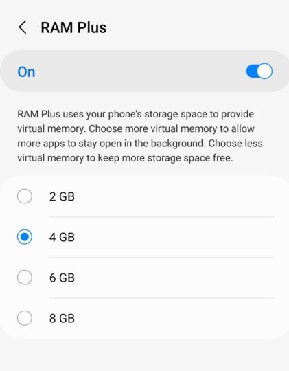 SamMobile sitesinde yer alan habere göre One UI 5.0 beta 2 ile birlikte RAM Plus menüsü yeniden güncellendi. Samsung burada artık kullanıcılara özelliği kapatma seçeneği de sunuyor. Böylece telefon ihtiyaç duyduğunda depolama biriminin bir kısmını ihtiyaçları doğrultusunda kullanamayacak. Öte yandan RAM Plus özelliği devre dışı bırakıldığında telefonun yeniden başlatılması gerekiyor.