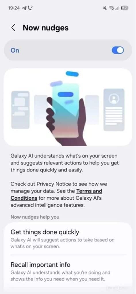 Android Authority sitesi, sızdırılan One UI 8.5 dosyalarında Now Nudges adlı yeni bir özellik keşfetti. Ekran görüntülerine göre Now Nudges, Galaxy AI tarafından destekleniyor ve Pixel 10 serisiyle tanıtılan Google’ın Magic Cue (Sihirli İpucu) özelliğine oldukça benziyor. Rutinlerinizi öğrendikten sonra, ihtiyacınız olduğunda proaktif olarak faydalı bilgiler önerebiliyor.