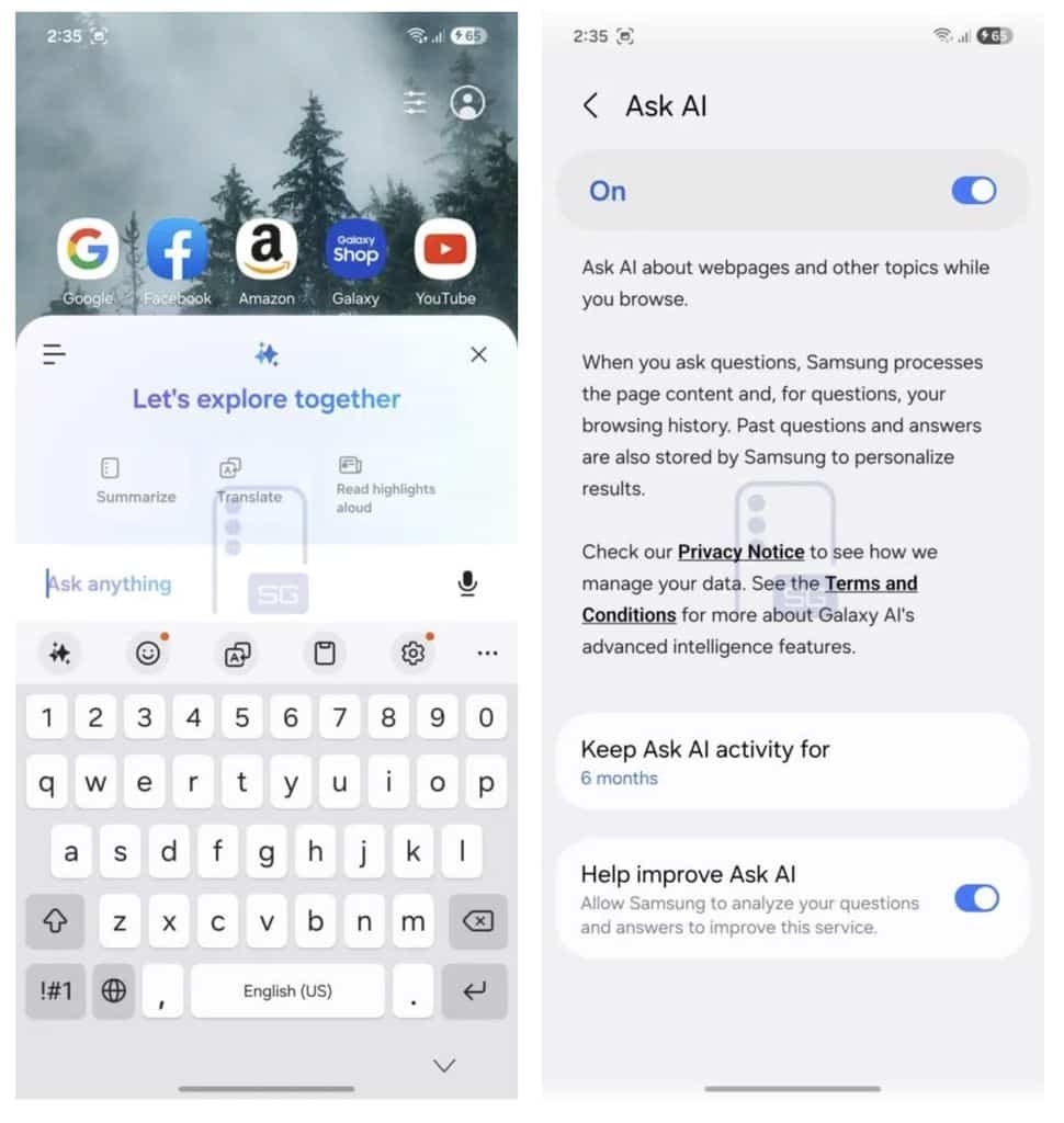 “Yapay Zekaya Sor” özelliğinin Perplexity AI altyapısıyla çalıştığı ve Samsung’un yapay zeka odaklı stratejisinin bir parçası olduğu belirtiliyor. Özelliğin yalnızca sayfa özetlemekle kalmayıp, içerikleri analiz ederek bağlamsal sorulara yanıt verebildiği ifade ediliyor. Bazı durumlarda ürün fiyatlarını karşılaştırma veya uzun metinlerden önemli bilgileri çıkarma gibi işlevler sunabileceği öne sürülüyor.