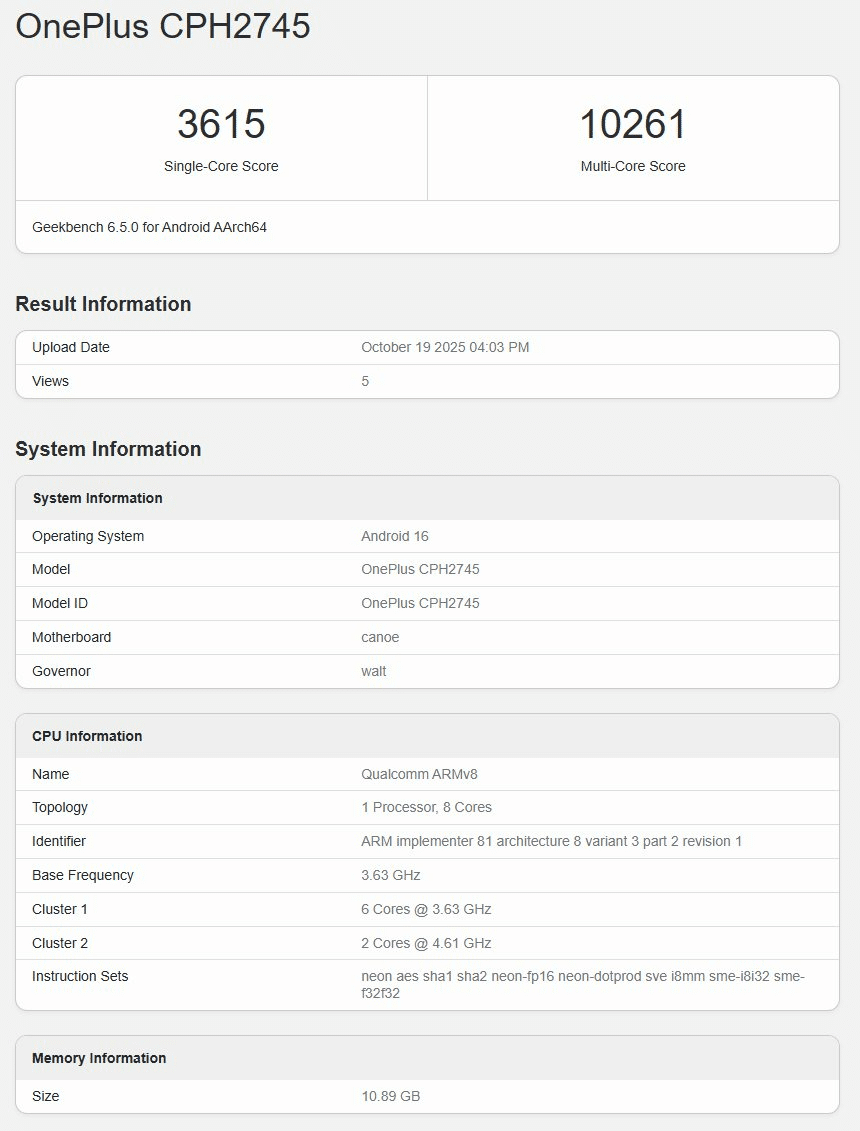 OnePlus, önümüzdeki hafta Çin’de OnePlus 15 ve Ace 6 amiral gemisi telefonlarını duyurmaya hazırlanırken, dikkatler OnePlus 15’in küresel pazardaki potansiyeline çevrildi. Daha önce Çin versiyonu (PLK110) Geekbench’te görülmüştü; şimdi ise CPH2745 model numaralı küresel versiyonu aynı platformda boy gösterdi.