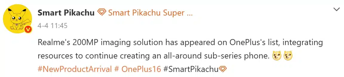 Weibo platformunda paylaşımlarda bulunan Smart Pikachu’ya göre, daha önce Realme ile ilişkilendirilen 200 megapiksellik bir görüntüleme çözümü artık OnePlus’ın geliştirme sürecine dahil edilmiş durumda. Önceki raporlar, bu periskop telefoto ünitesinde Samsung’un HP5 sensörünün kullanılabileceğini öne sürüyordu. Aynı sensörün Realme 16 Pro serisi ve Realme GT 8 Pro gibi modellerde de yer alması bekleniyor.