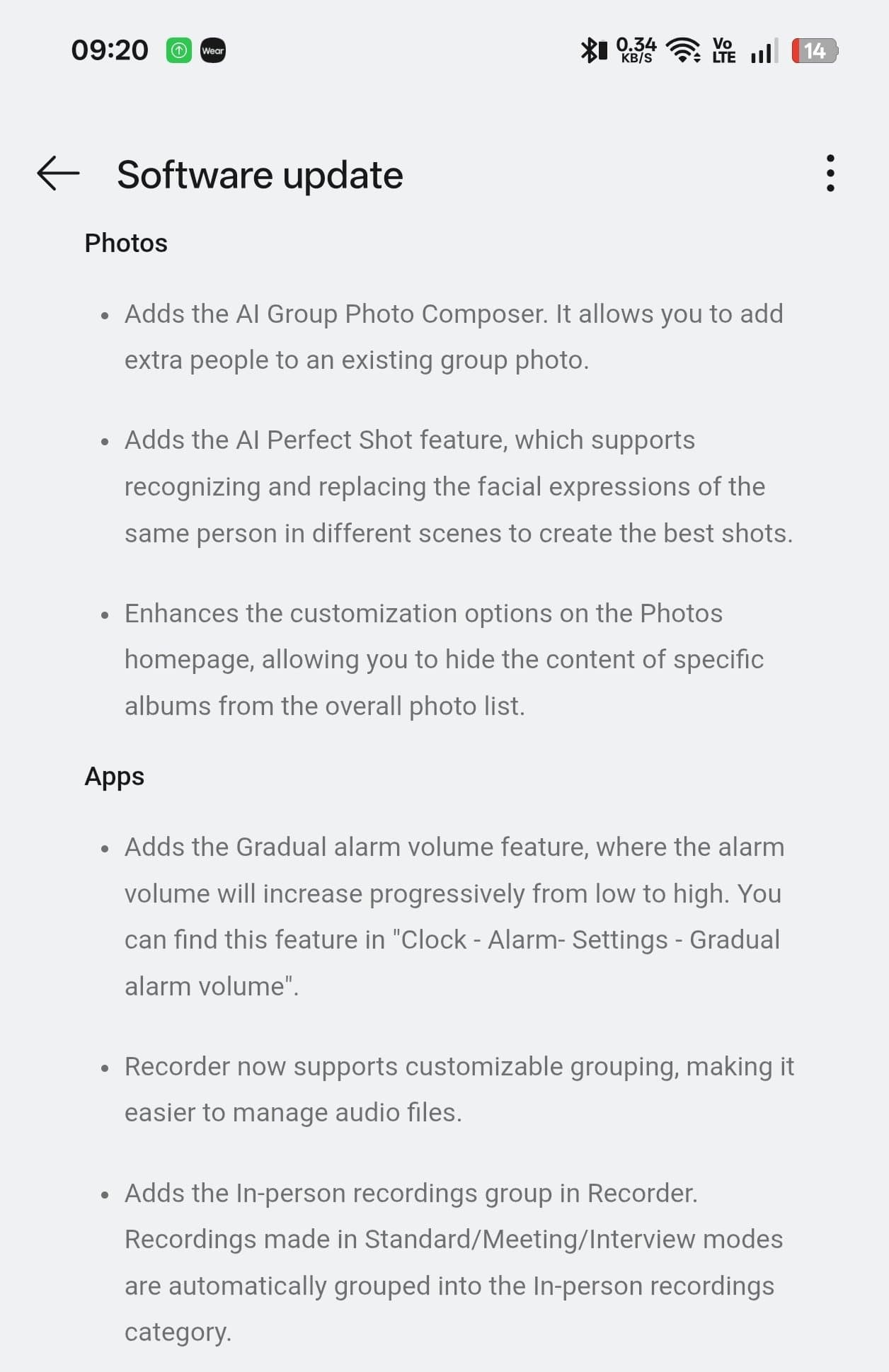Sistem uygulamalarında da önemli güncellemeler bulunuyor. Saat uygulaması, ani gürültüyü önlemek amacıyla düşükten yükseğe doğru kademeli olarak artan alarm ses seviyesi özelliğini destekliyor. Kaydedici uygulaması ise özelleştirilebilir gruplama ile güncellendi ve “Yüz yüze kayıtlar” kategorisi, Standart, Toplantı veya Röportaj modlarındaki kayıtları otomatik olarak sıralıyor.