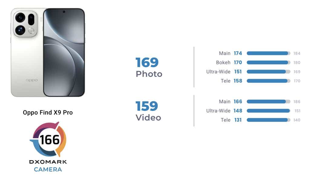 OPPO Find X9 Pro, DxOMark’ın güncel akıllı telefon kamera sıralamasında 166 puan alarak 5. sıraya yerleşerek Honor Magic 8 Pro’yu geride bıraktı. OPPO’nun yeni amiral gemisi modeli, kamera performansıyla alanda en iddialı telefonlardan biri olduğunu ispatladı.
