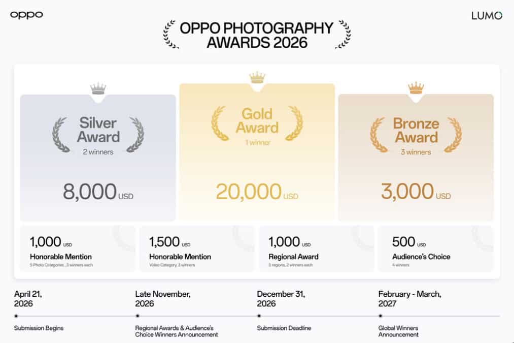 OPPO Fotoğrafçılık Ödülleri 2026 başladı. İlk kez eklenen video kategorisi ve 76.500 dolarlık ödül havuzuyla işte detaylar.