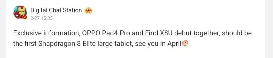 Ortaya çıkan yeni bir bilgiye göre OPPO önümüzdeki ay Find X8 Ultra'yla birlikte amiral gemisi Pad 4 Pro tabletini duyuracak.