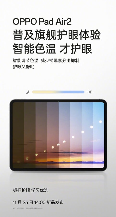 Cihaz, OnePlus Pad Go ile aynı görünüyor ve Oppo’nun Weibo’daki gönderisine göre tıpkı OPPO Pad Go gibi 1720 x 2408 piksel çözünürlüklü bir LCD panel sunacak. OPPO ayrıca Pad Air 2’nin normal LCD’lere kıyasla zararlı mavi ışığı %60 daha fazla filtreleyen mavi ışık filtresiyle de övünüyor.