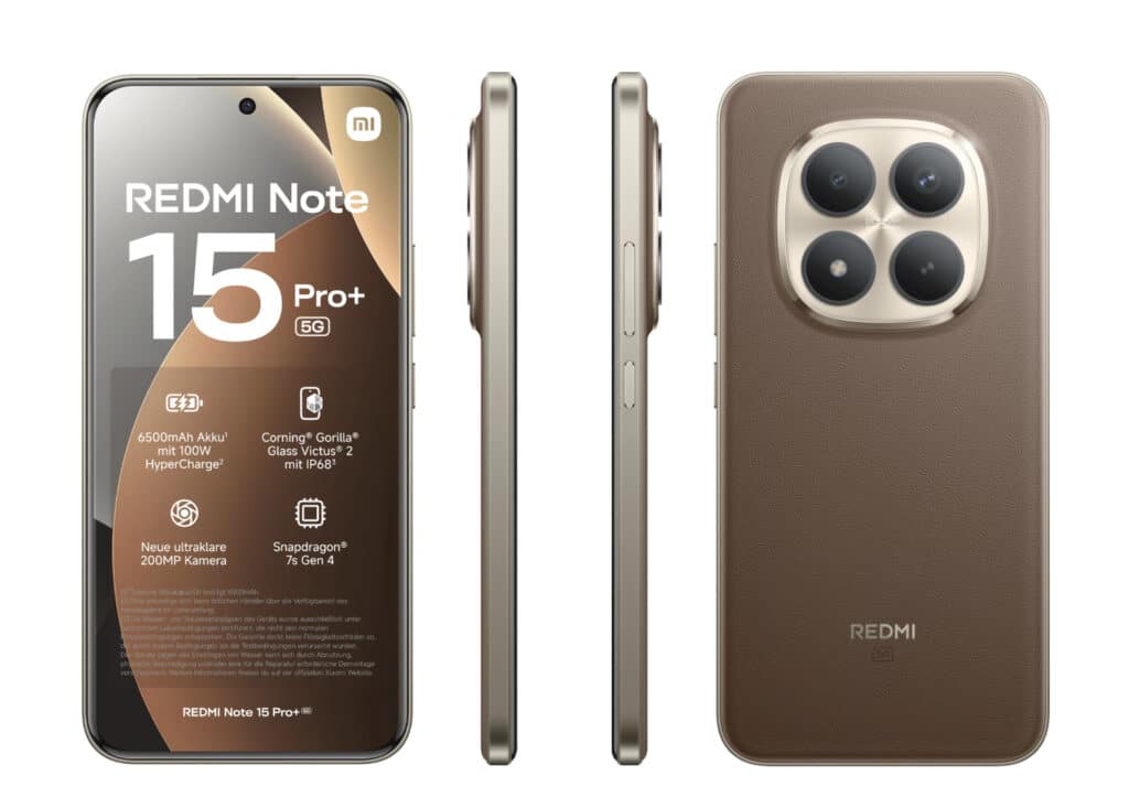 Küresel çapta en üst seviye model olan Redmi Note 15 Pro+’ın, 1.5K çözünürlüğe ve 120 Hz yenileme hızına sahip 6.83 inçlik 1280×2772 OLED ekrana, Snapdragon 7s Gen 4 işlemciye, 8 GB RAM’e, 256/512 GB depolama seçeneklerine ve 100W hızlı kablolu şarjı destekleyen 6.500 mAh pile sahip olacağı bildiriliyor.