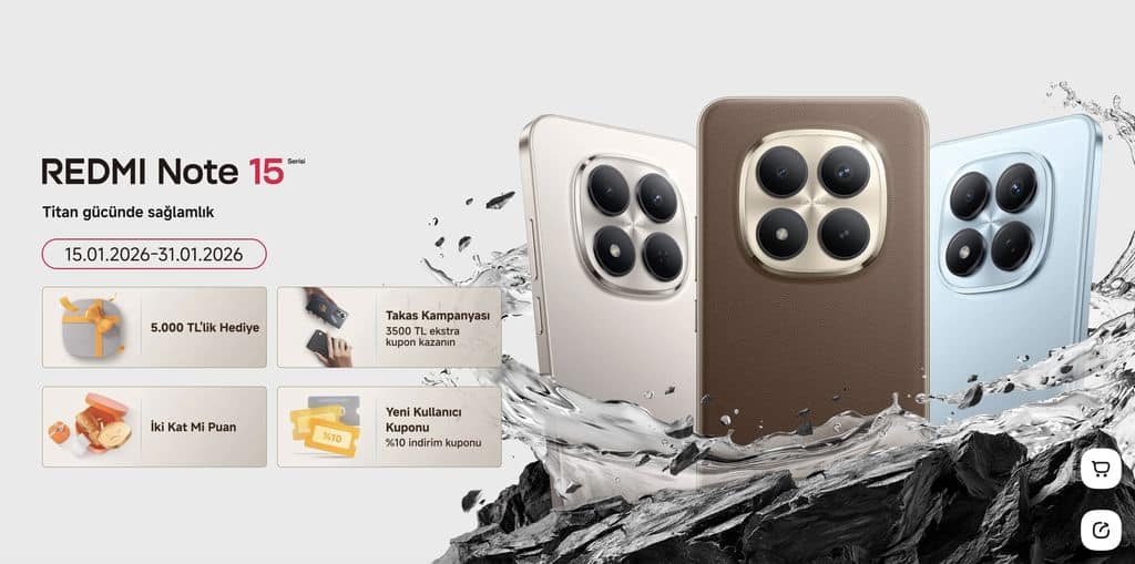 Xiaomi, merakla beklenen Redmi Note 15 serisini Türkiye’de resmi olarak satışa sundu. Farklı donanım ve fiyat seçenekleriyle gelen seri, giriş seviyesinden üst segmente kadar geniş bir kullanıcı kitlesine hitap edecek. Serinin Türkiye fiyatları da netleşti. Buna göre Redmi Note 15 modeli 16.999 TL’den satışa çıkarken, Redmi Note 15 Pro 20.999 TL, Redmi Note 15 Pro 5G 26.999 TL ve serinin en güçlü modeli olan Redmi Note 15 Pro+ 5G ise 32.999 TL fiyat etiketiyle raflardaki yerini aldı.