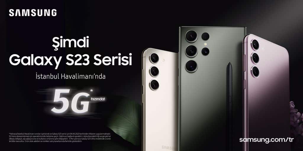 Galaxy S22 serisiyle kıyaslandığında iki kat daha fazla ön satış gerçekleştiren S23 serisi için sürpriz bir de 5G duyurusu yapıldı. Samsung, 5G’ye yönelik çalışmaları kapsamında Türkiye’de ilk 5G hizmetini İstanbul Havalimanı’nda Galaxy S23 Serisi cihazlarda kullanıma açacağını duyurdu. Samsung’un açıklamasına göre, ilgili otorite ve düzenleyici kurumların yönlendirmesi doğrultusunda 5 Nisan tarihi itibarıyla, Galaxy S23 Serisi cihazlar için 5G hizmetinin İstanbul Havalimanı’nda kullanıma açılacak.