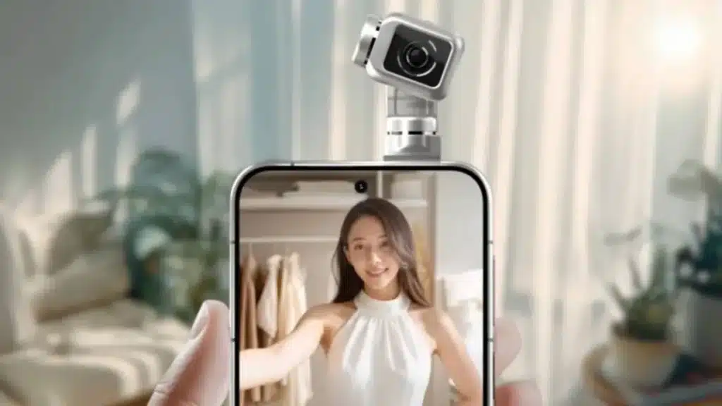 Klasik kamera çıkıntısı yerine kullanılan bu mekanik kol, gerektiğinde açılarak normalde tripod veya zorlayıcı bir açı gerektiren çekimleri mümkün kılıyor. İşlev tamamlandığında ise kol, hiçbir çıkıntı bırakmadan cihazın içine geri katlanıyor. Hem kamera sistemi hem de bir bilim kurgu aksesuarı gibi çalışıyor.