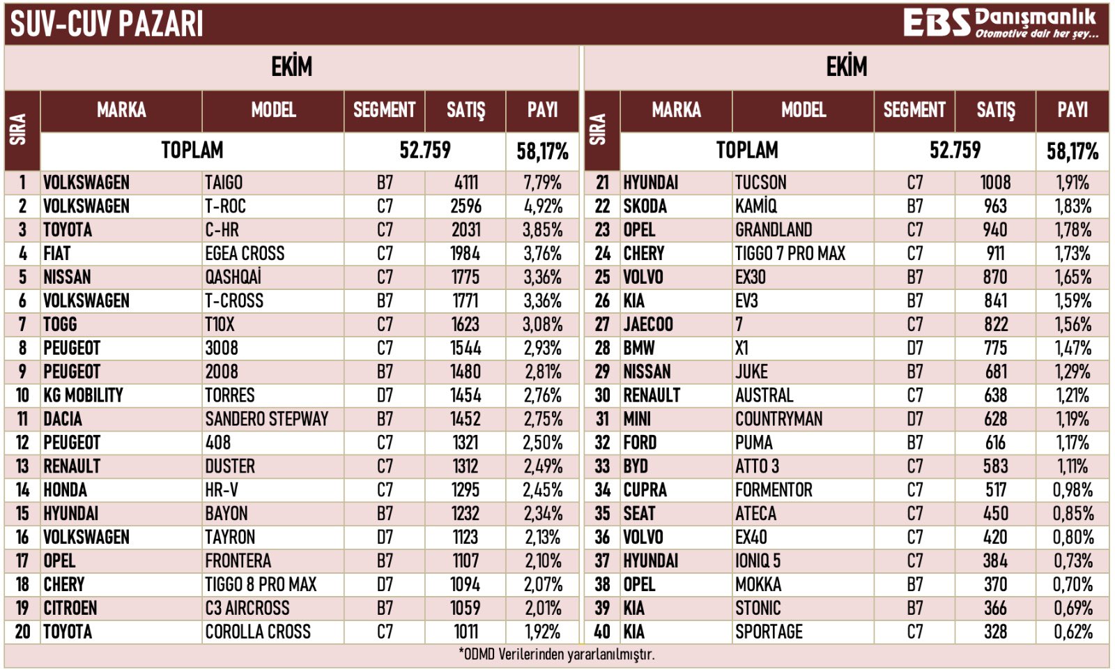 Listenin en çok konuşulan markalarından biri ise şüphesiz yerli otomobilimiz Togg oldu. Toplamda 4.155 adetlik satış rakamına ulaşan Togg, ilk 10’da 9. sıraya yerleşerek, Skoda, Nissan, Mercedes, Audi ve BMW gibi küresel otomotiv devlerini geride bıraktı. Bu başarı, Togg’un pazara güçlü bir giriş yaptığını ve kısa sürede köklü markalar arasında rekabet edebilir konuma geldiğini gösteriyor.