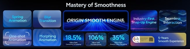 Ayrıca Origin Animasyon Sistemi, “Yay”, “Bulanık Geçiş” ve “Morphing” efektleriyle görsel akıcılığı artırıyor. “Snap-Up Motoru” ise yoğun görevlerde işlem gücünü akıllıca yöneterek tepki süresini optimize ediyor.