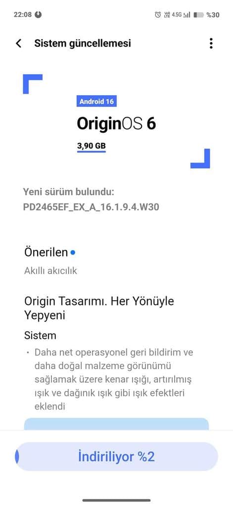 Güncelleme notlarına göre OriginOS 6, özellikle bildirim ekranı ve arayüz tasarımında ciddi yenilikler getiriyor. Daha net geri bildirim, doğal malzeme görünümü, kenar ışığı, artırılmış ışık ve dağınık ışık efektleri başta olmak üzere görsel detaylar arayüzün genel estetiğini önemli ölçüde yeniliyor. Toplamda 3.90 GB boyutundaki bu büyük güncellemenin indirilmesi için Wi-Fi bağlantısı kullanılması öneriliyor.