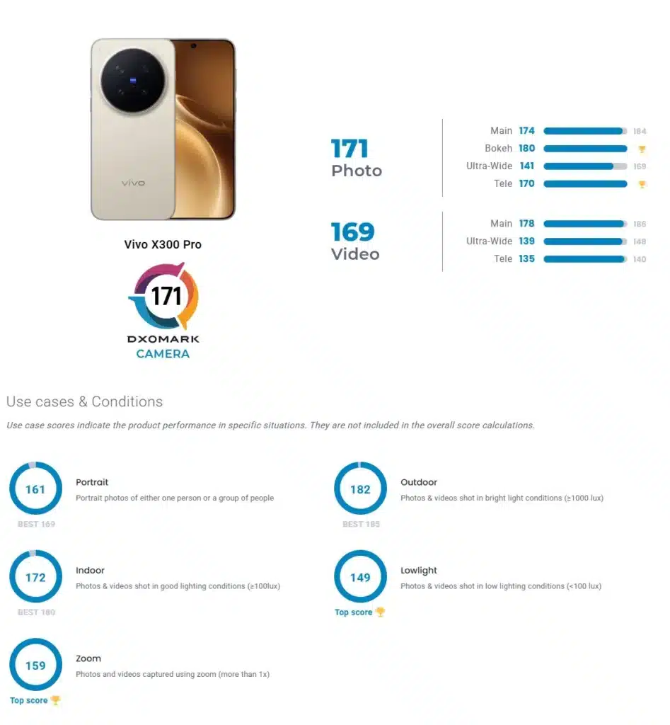Fotoğraf tarafında vivo X200 Ultra hala biraz daha güçlü. X200 Ultra 173 puan alırken, X300 Pro fotoğraf kategorisinde 171 puanda kaldı. Buna karşın video performansında tablo tersine dönüyor. vivo X300 Pro, video testlerinden 169 puan alarak X200 Ultra’nın (156 puan) önüne geçti. Bu skorla cihaz, DxOMark’a göre video kaydı konusunda şu anda en iyi Android telefon konumunda ve iPhone 17 Pro’nun hemen arkasında yer alıyor.