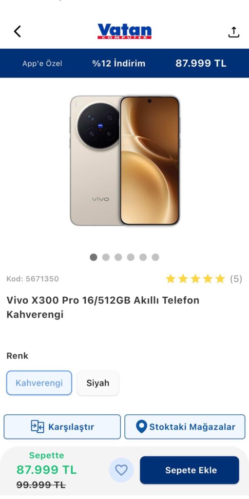 Vatan Bilgisayar’ın web’e özel olarak sunduğu bu indirim, güçlü donanımı ve gelişmiş kamera özellikleriyle öne çıkan vivo X300 Pro’yu daha cazip hale getiriyor. Hemen belirtelim Vatan Bilgisayar’ın Web’e özel indirim fırsatları kısa süreli oluyor ve satın almak istiyorsanız elinizi çabuk tutmanızı öneriyoruz.