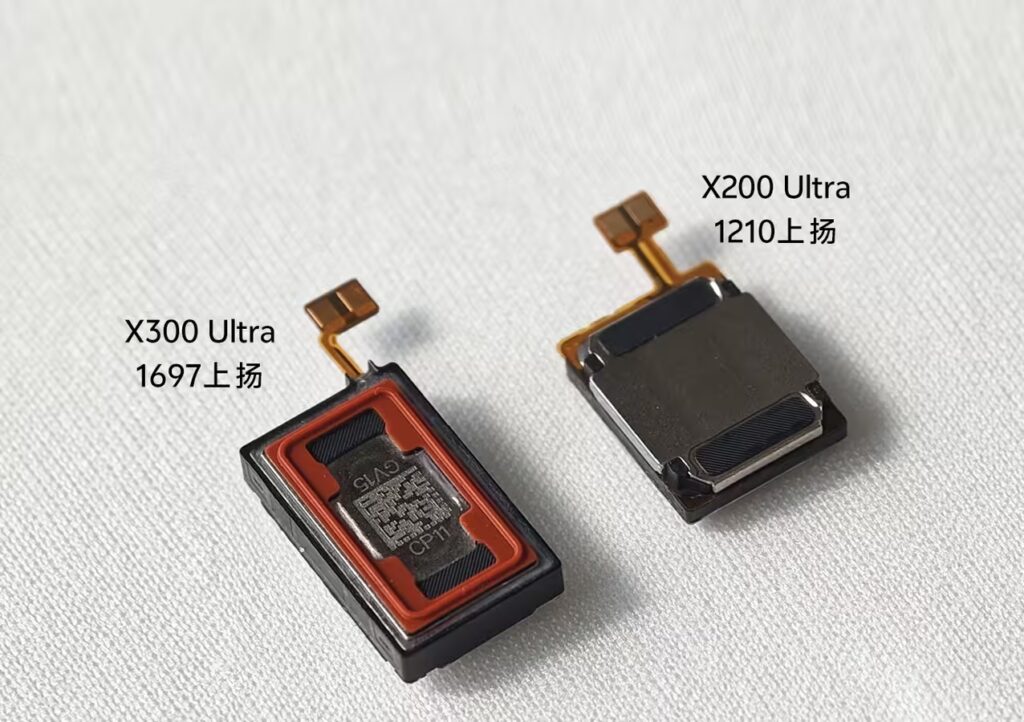 Ses tarafındaki yenilikler yalnızca mikrofonlarla sınırlı değil. vivo X300 Ultra modelinde daha büyük üst hoparlör kullanılacak. Yaklaşık 0,8 cc hacme sahip bu hoparlör modülü, birçok amiral gemisi telefonda bulunan 0,3–0,5 cc hacimli hoparlörlere kıyasla daha büyük bir yapı sunuyor.