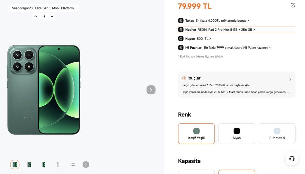 Merak edilen Türkiye fiyatına gelince; Xiaomi 17 ülkemizde keşif yeşili, siyah ve buz mavisi renkleriyle listeleniyor. Fiyatlar: