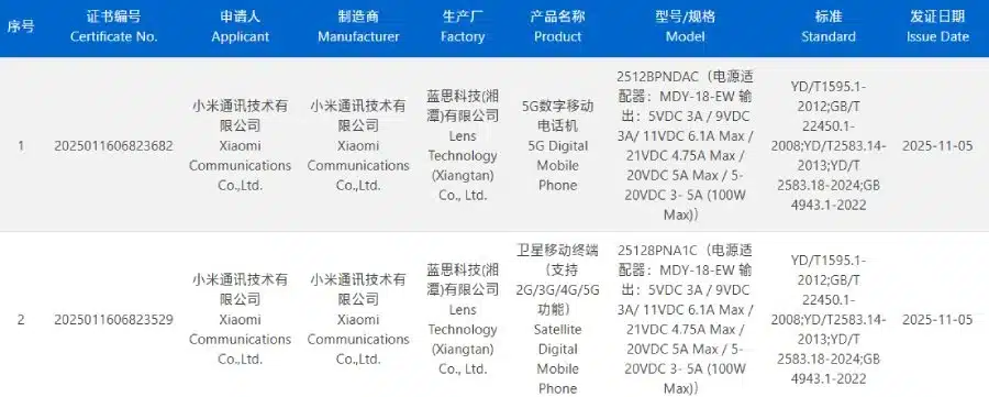3C sertifikası, Xiaomi 17 Ultra’nın 100W kablolu hızlı şarj desteğine sahip olacağını doğruluyor. Karşılaştırmak gerekirse, bir önceki model Xiaomi 15 Ultra, 90W hızlı şarjı destekliyordu.
