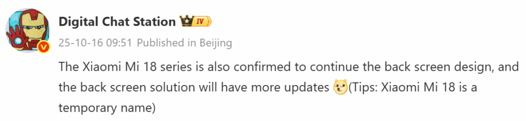 Güvenilir sızıntı kaynağı Digital Chat Station, Xiaomi’nin Xiaomi 18 serisinde arka ekran konseptini koruyacağını ancak bu kez çok daha işlevsel ve yaratıcı özelliklerle geliştireceğini bildirdi.