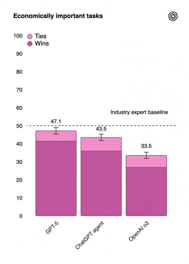 ChatGPT-5 hukuk, lojistik, satış ve mühendislik gibi 40’tan fazla meslekte uzman düzeyinde bilgi ve beceriye eşdeğer bir performans sergiliyor. Bu durum, bilgiye dayalı mesleklerde çalışanlar için büyük bir kolaylık ve verimlilik artışı vadediyor.